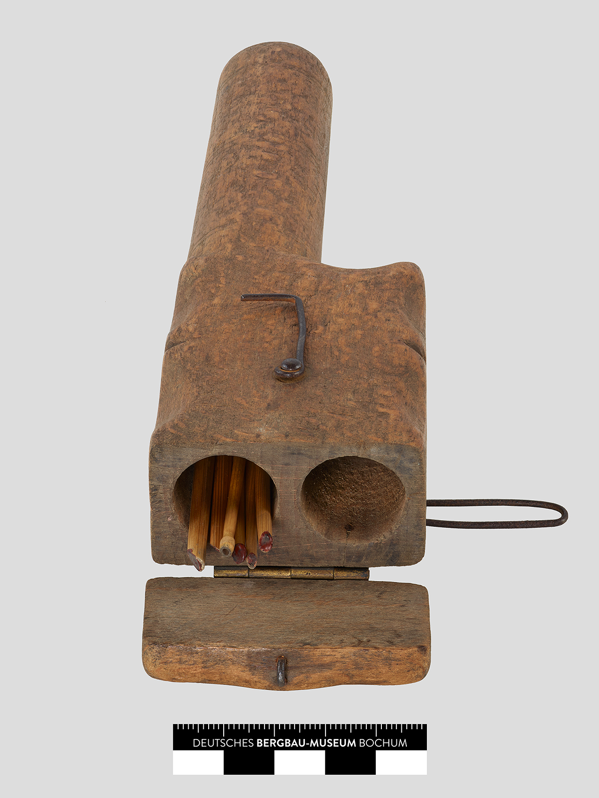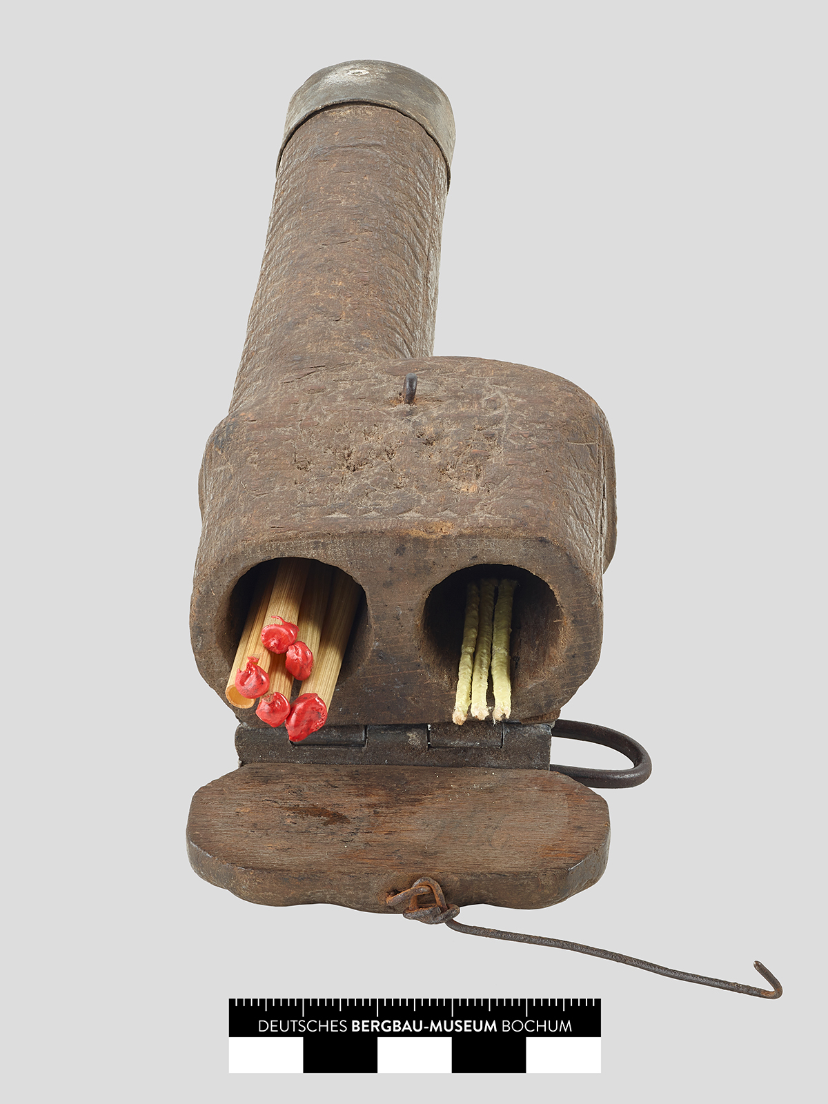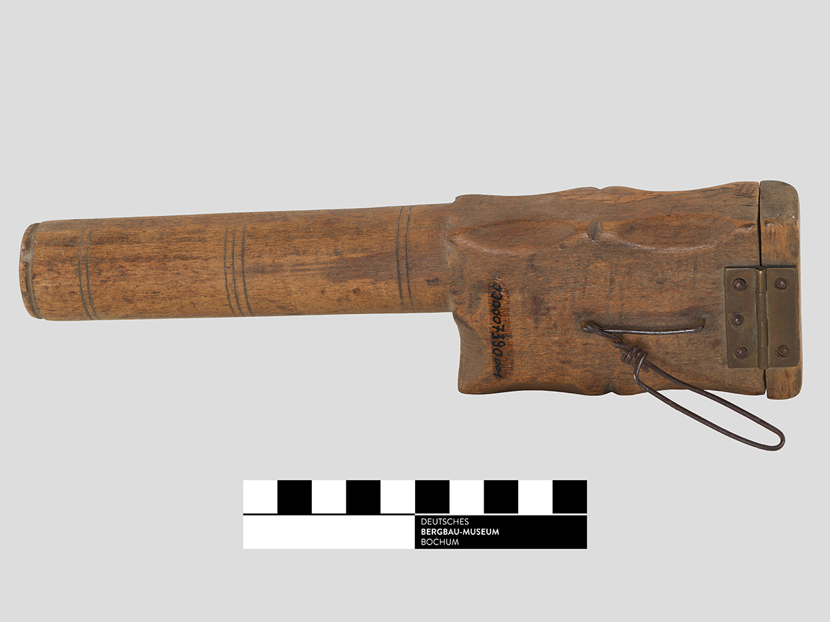 Ein fast unscheinbares Holzstück entpuppt sich als Holzbüchse mit brisantem Inhalt und spannender Geschichte. Diese Büchse war dem Bergmann nicht nur Hilfe und Arbeitsinstrument. Sie wurde außerhalb des eher technischen Arbeitseinsatzes auch in der Freizeit handwerklich verschönert und erhielt dadurch mitunter einen ideellen Wert für den Bergmann.