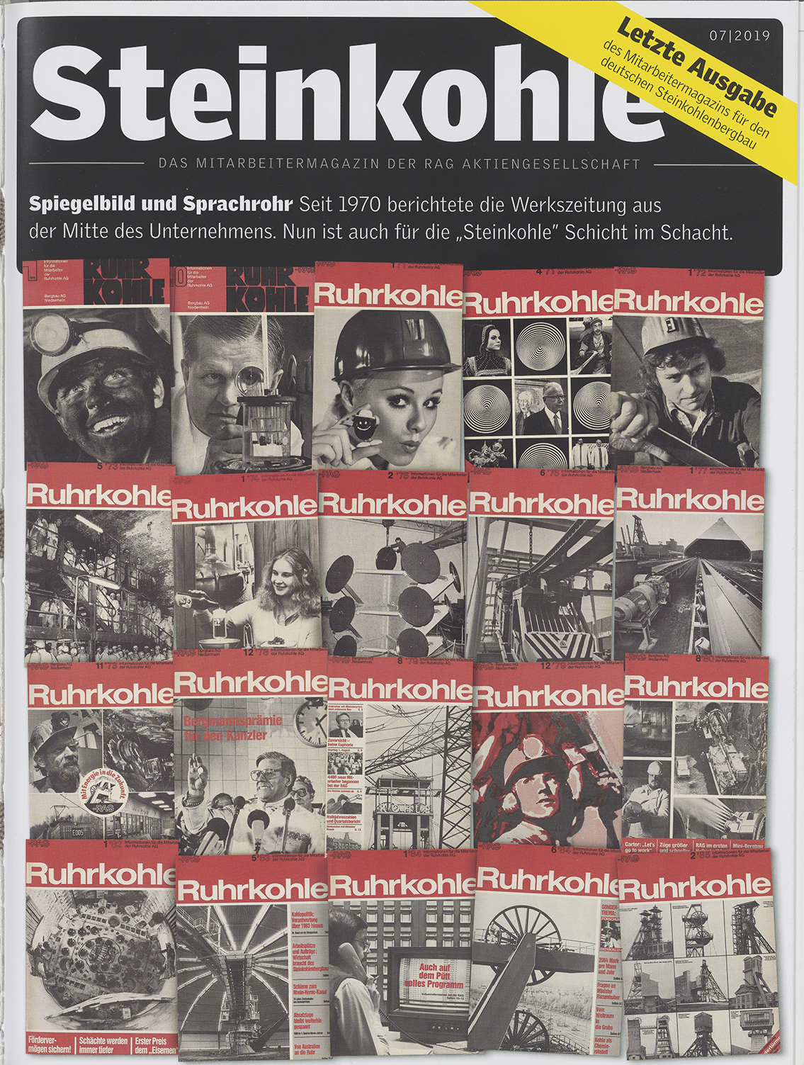 „Spiegelbild und Sprachrohr“, so lautete programmatisch das Motto der letzten Ausgabe der „Steinkohle“, dem „Mitarbeitermagazin der RAG Aktiengesellschaft“, wie der Untertitel lautete. Sie erschien im Juli 2019, gut ein halbes Jahr nachdem das Auslaufen des produktiven deutschen Steinkohlenbergbaus am 21. Dezember 2018 auf dem Bergwerk Prosper-Haniel in Bottrop feierlich besiegelt worden war. Die Macher des Magazins nutzten die Gelegenheit, um auf dessen 49-jährige Geschichte zurückzublicken, die 1970 mit der ersten Ausgabe der „Ruhrkohle“ als Werkzeitschrift der damals neu gegründeten Ruhrkohle AG begonnen hatte.