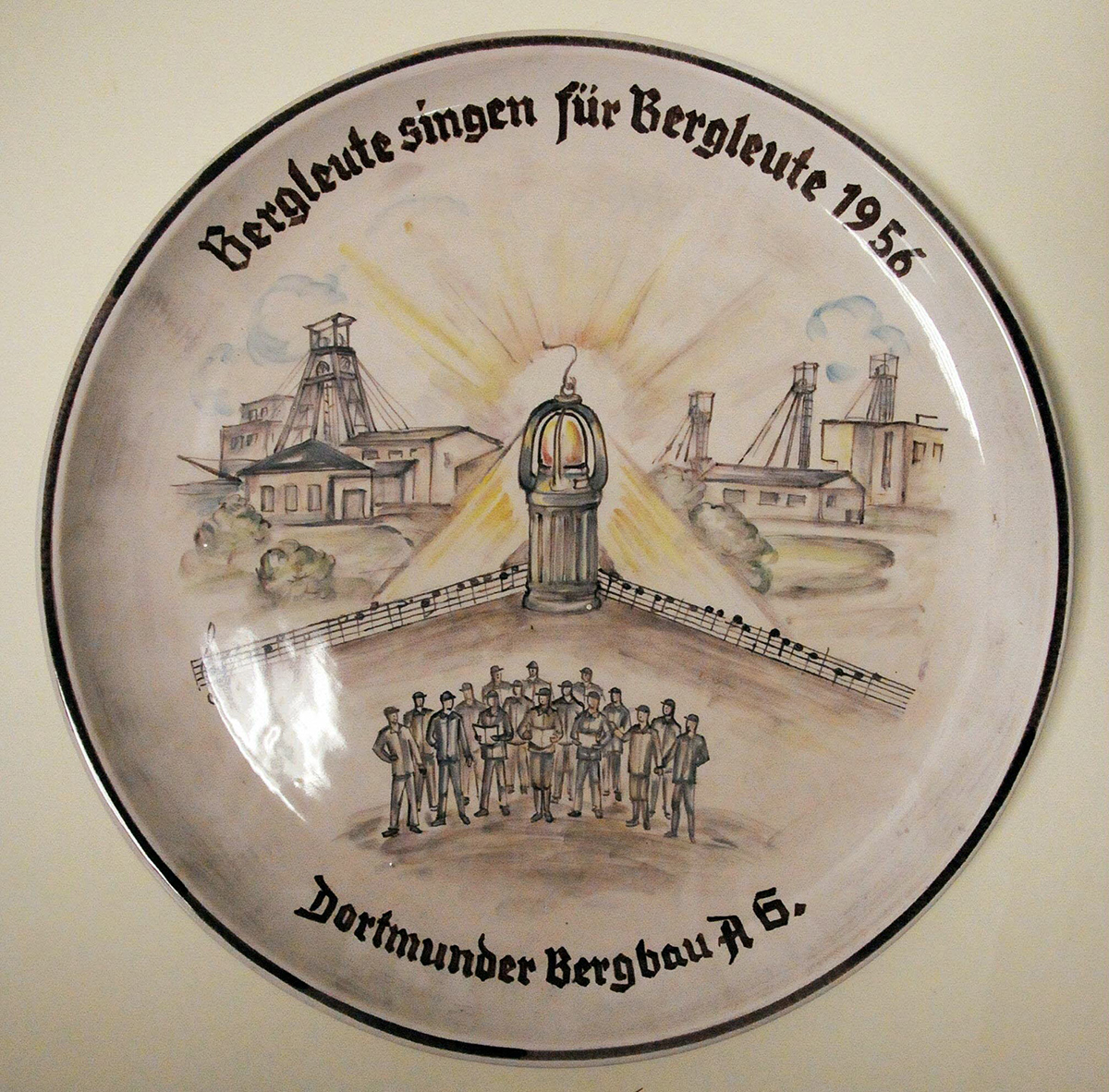 Seit den 1950er-Jahren profitierten die Chöre vom Interesse der Bergbauunternehmen an einer „sinnvollen Freizeitgestaltung“ ihrer Mitarbeiter und der damit verbundenen Absicht, angesichts einer immer geringeren Attraktivität des Berufsstandes sein Ansehen und die Bergbaukultur allgemein zu fördern. Dafür standen etwa die 1948 gegründete Revierarbeitsgemeinschaft für kulturelle Bergarbeiterbetreuung (REVAG) und die Vereinigung der Freunde von Kunst und Kultur im Bergbau (VfKK) aus dem Jahr 1947. Wichtigstes öffentliches Forum chorbezogener Aktivitäten war die von der Gelsenkirchener Bergwerks-AG (GBAG) organisierte und geförderte Konzertreihe „Bergleute singen für Bergleute“, an der sich zahlreiche Ruhrgebietschöre beteiligten und an die nicht nur Plakate (montan.dok/BBA P 46), sondern auch Gedächtnisobjekte wie Wandteller (montan.dok 030320114001) oder Kohlekeramiken (montan.dok 037000125001) erinnern. Mit dem Ende des Steinkohlenbergbaus in Deutschland 2018 verschwand die Vielfalt und die Tradition bergmännischer Gesangsvereine. Viele der Chöre haben sich aufgelöst oder leiden an Überalterung. Eine Ausnahme ist der 1987 von der damaligen RAG Aktiengesellschaft gegründete Ruhrkohle-Chor, der bis heute mit seinen ca. 100 Sängern die Erinnerung an den Bergbau und die lange Geschichte bergmännischen Singens im Ruhrgebiet aufrecht hält.